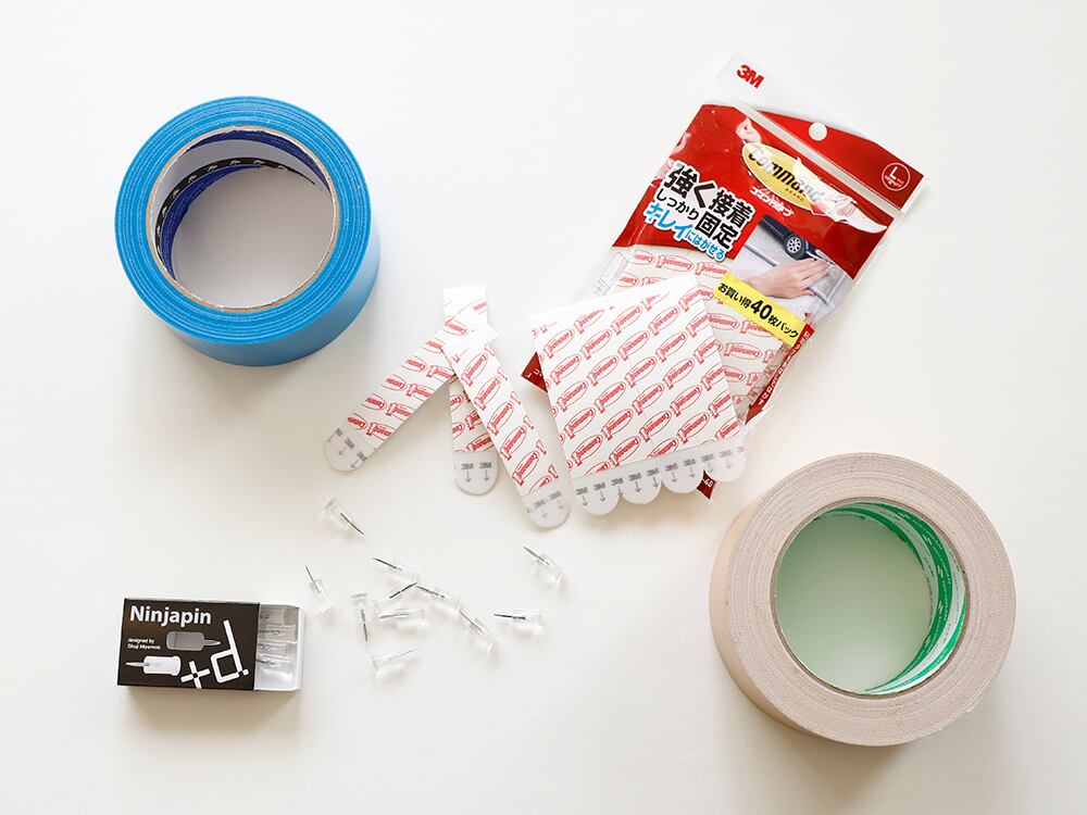 もちろん、両面テープとして売っている製品はたくさんありますが、剥がしやすさやコスト面を考えると「養生テープ」を使い、両面テープをつくる方法がオススメです。